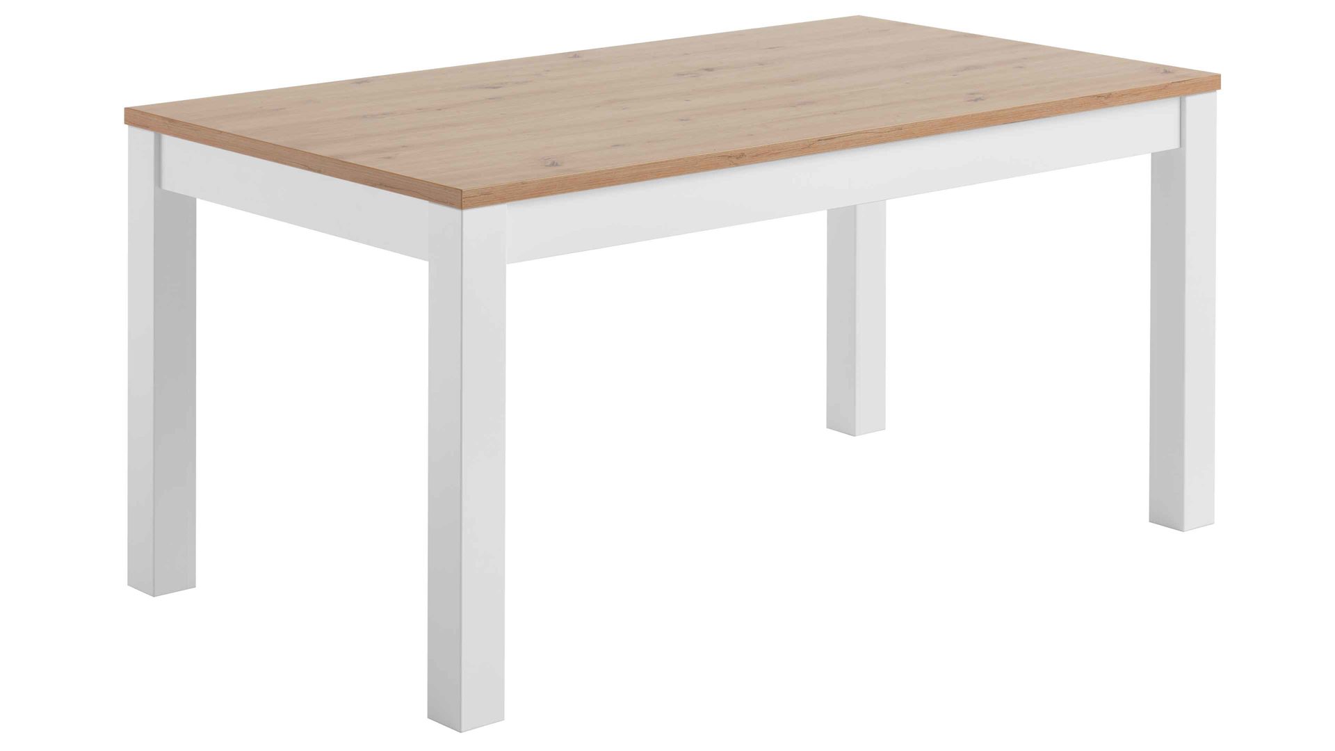 Er besteht aus hochwertigen Materialien, ist exzellent verarbeitet und präsentiert sich zudem modern und stilvoll designt. Durch die gelungene Kombination aus Eiche Artisan-Nachbildung mit klassischem Weiß strahlt der funktionsstarke Esszimmertisch natürlich warmen Charme und puristische Eleganz aus.