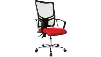 Der komfortable Flachsitz des Bürostuhls besticht durch seine Knierolle und einer sogenannten Punktsynchron-Mechanik, wodurch die Federkraft individuell auf das Körpergewicht anpassbar und mehrfach arretierbar ist. Doch auch auf die Optik wurde hier großen Wert gelegt: Der rote Sitz des Drehstuhls wird aufgefangen von einem edel verchromten Drehkreuz. Die maximale Nutzergröße liegt bei ca. 192 cm, das maximale Nutzergewicht bei ca. 110 kg. Die maximal empfohlene Nutzungsdauer pro Tag sollte acht Stunden nicht überschreiten. Made in Germany.