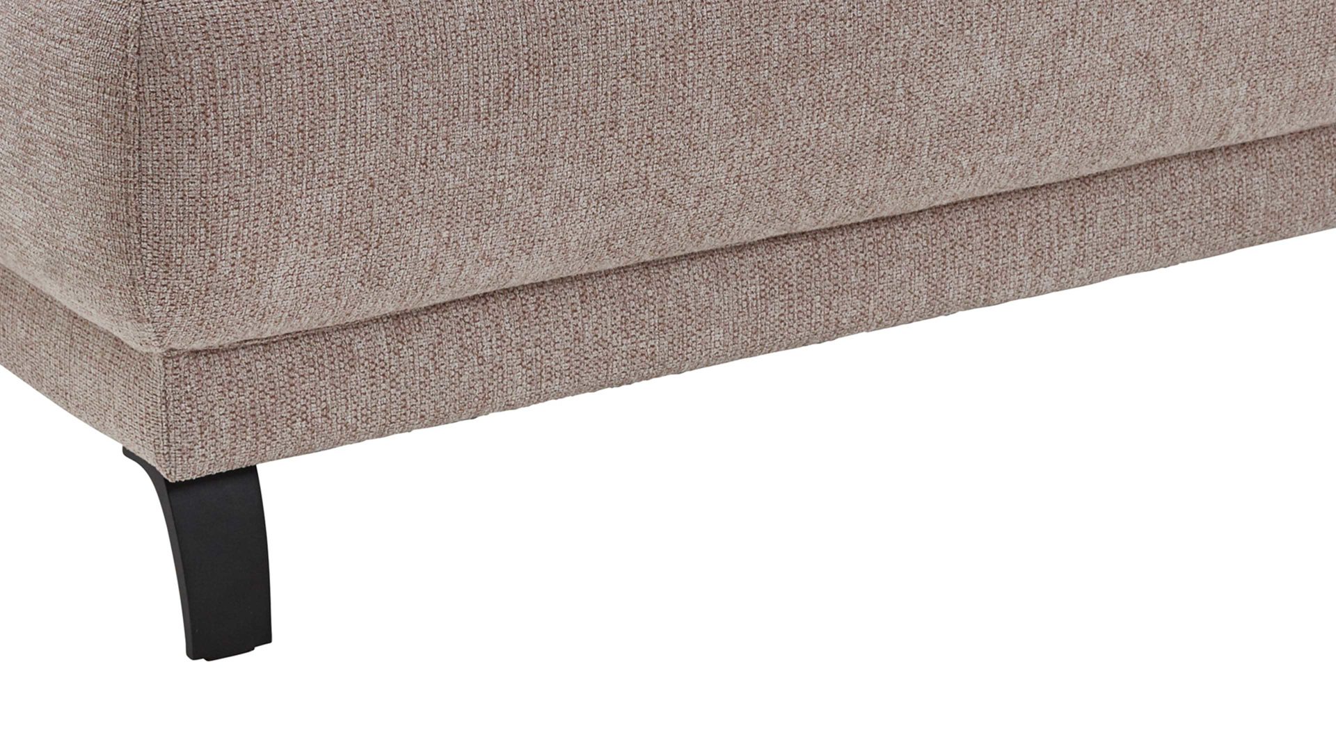 Erleben Sie mit der Hockerbank Rhodos ein neues Level an Komfort und Eleganz. Der rosefarbene Stoffbezug Mito verleiht Ihrem Wohnzimmer eine warme und gemütliche Atmosphäre, während die schwarzen Metallfüße für einen modernen Touch sorgen.