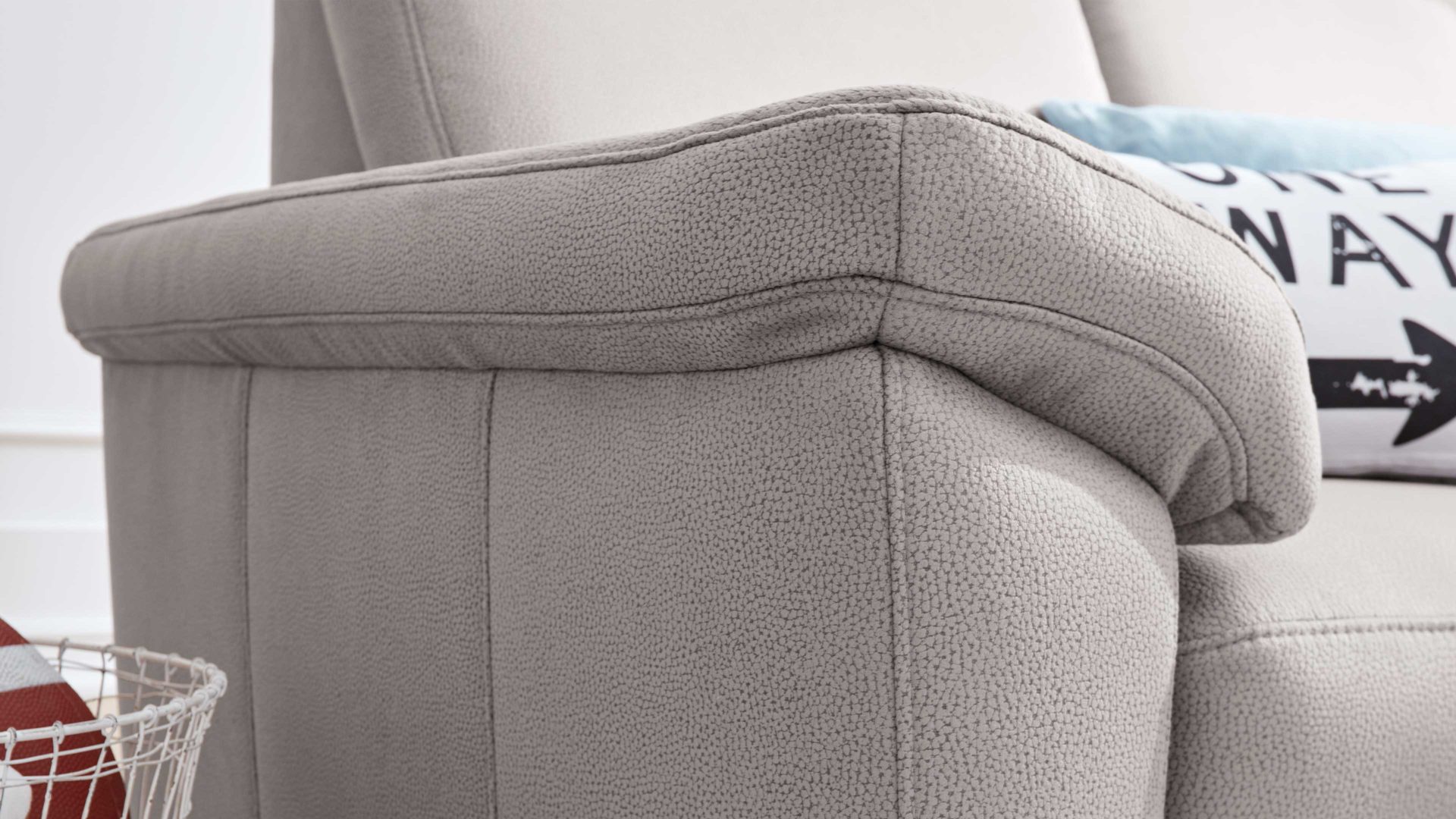 Die hochwertige Federung aus Super-Bonnellfederkern auf Wellenunterfederung sorgt für Sitzkomfort der Extraklasse. Die Sitzhöhe der Garnitur beträgt ca. 44 cm, die Gesamthöhe beläuft sich auf ca. 91 cm. Die benötigte Stellfläche beträgt ca. 240 x 330 cm (BxL, von links nach rechts), die Schenkelmaße betragen ca. 240 x 330 x 163 cm (TxLxT, von links nach rechts).