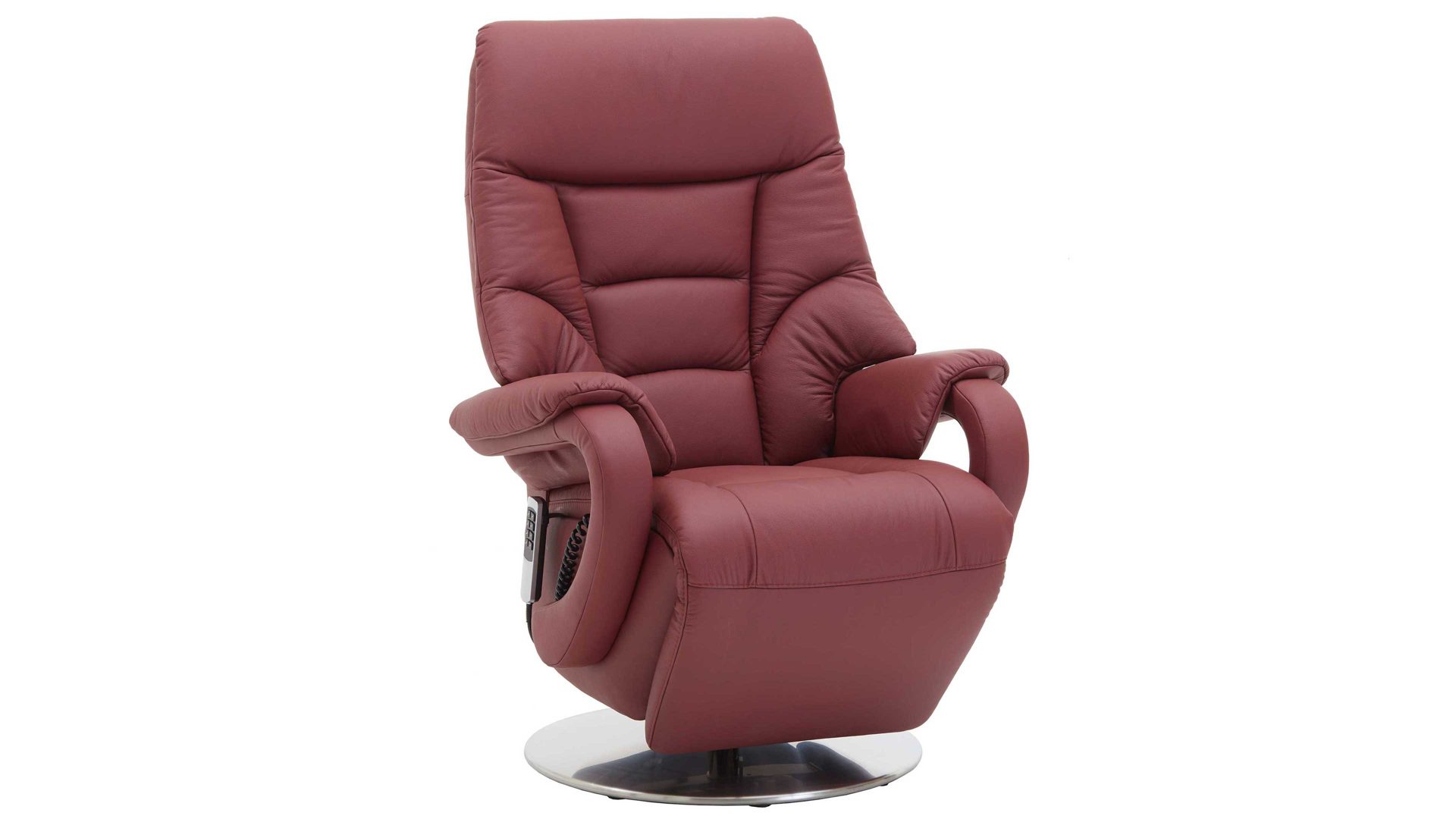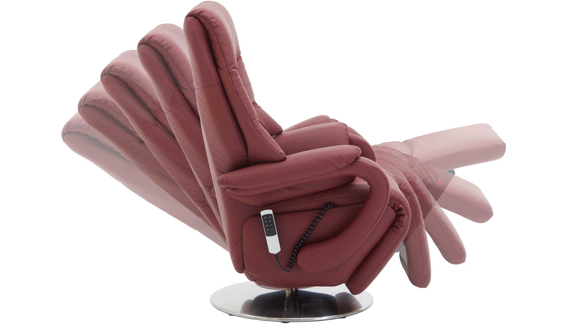 Sie möchten bequem sitzen und zugleich auf ein modernes Design bei Ihrem Polstermöbel nicht verzichten? Dann ist der Relaxsessel bzw. Drehsessel aus rotem Leder und einem gebürsteten Edelstahl-Sternfuß das optimale Sitzmöbel. Nehmen Sie in Ihrem Wohnzimmer oder der Leseecke Platz auf der lederbezogenen Sitzschale mit einer Sitzhöhe von ca. 47 cm und einer Sitztiefe von ca. 51 cm.
