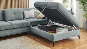 • Die Abbildung zeigt ein Wohnbeispiel, welches auch Dekoration sowie separat erhältliches Zubehör enthält. Im Lieferumfang enthalten ist eine motorische Liegefunktion.
