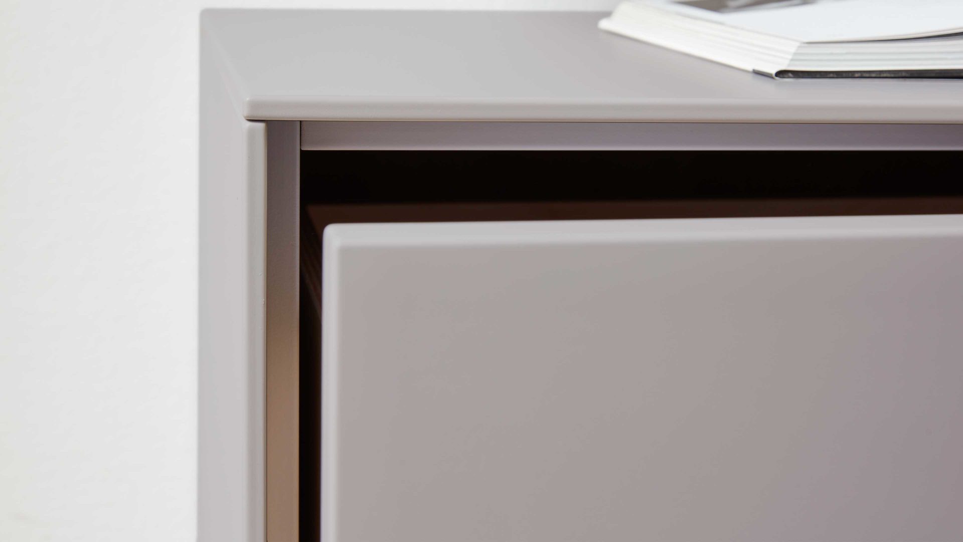 samtgraue Mattlackoberflächen und carbonfarben pulverbeschichtete Metallgriffe