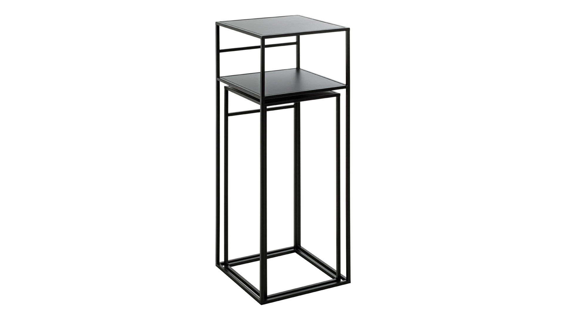 Dieses hochwertige Beistelltisch-Set repräsentiert die Eleganz schlichter Modernität. Aus klassisch mattschwarz lackiertem Metall einschließlich Vierkantrohr-Gestell gefertigt, erscheinen die zwei Beistelltische puristisch und sind dazu enorm robust und langlebig.