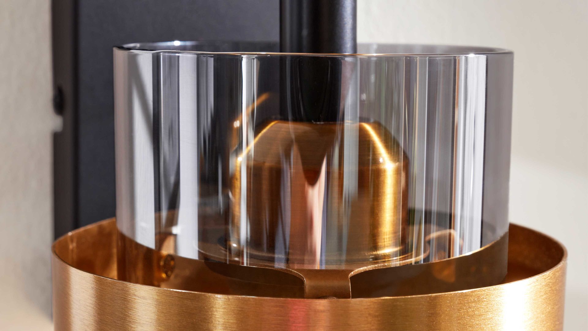 | Farbhinweis: | Rauchglas Messing Schwarz | |