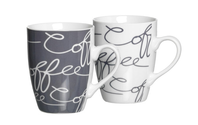 Der Schriftzug Coffee zeigt deutlich, welches köstliche Heißgetränk Sie idealerweise aus diesen stilvollen Kaffeebechern Cornello Grey genießen. Sie haben dabei die Wahl zwischen einem Kaffeebecher in modernen Farben in dunklem Grau mit weißer Schrift oder einer weißen Tasse mit grauer Schrift. Weitere Pluspunkte für Sie: Der Kaffeebecher hat eine Füllmenge von ca. 250 ml, ist praktischerweise spülmaschinenfest und lässt sich platzsparend stapeln.