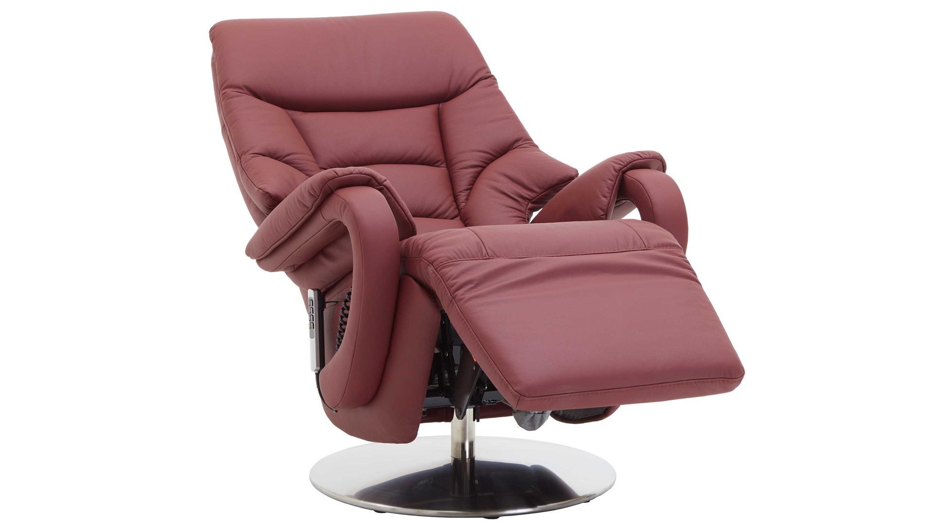 Dieser Relaxsessel kombiniert einen robusten glänzenden Edelstahl-Tellerfuß mit einem stilvollen merlotfarbenen LongLife-Lederbezug. Durch die top aufeinander abgestimmten Materialien und Farben strahlt der Fernsehsessel moderne Eleganz aus. Für die nötige Stabilität sorgt der Stahlrohrrahmen. Er macht den TV-Sessel bis 130 kg belastbar. Die Maße des hochwertig verarbeiteten Relaxsessels belaufen sich auf ca. 80 x 116 x 80 cm (BxHxT), bei einer Sitzhöhe von ca. 49 cm und einer Sitztiefe von ca. 55 cm.