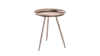 Der Durchmesser des stilvollen Beistelltisches beläuft sich auf ca. 38 cm. Seine Höhe beträgt ca. 47 cm. Alternativ oder ergänzend können Sie den vielseitig einsetzbaren Tisch auch in extravagantem Antikbronze und/oder mit etwas größeren Maßen bestellen, ganz nach Geschmack und Bedarf.