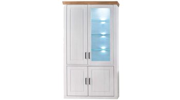 - Die zweitürige Standvitrine misst ca. 73 x 210 x 40 cm (BxHxT) und beherbergt jeweils drei Glas- und Holzböden. Auf den Böden hinter dem Glaseinsatz kommt Dekoratives besonders schön zur Geltung, etwa edles Geschirr oder Erinnerungsstücke, die Ihnen am Herzen liegen.