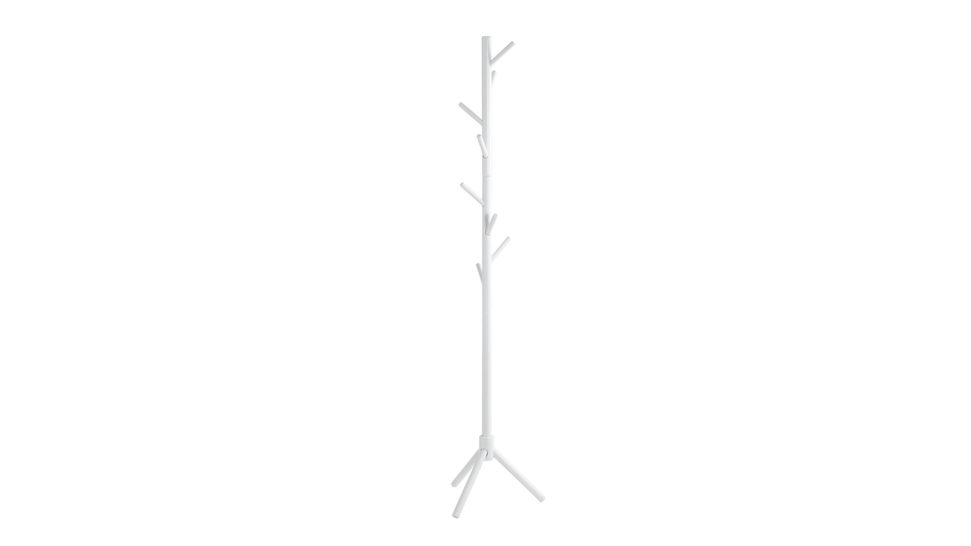 Der Garderobenständer ist der ideale Begleiter für einen aufgeräumten Eingangsbereich. Mit seinem stabilen, weiß lackierten Massivholzgestell und den acht Garderobenhaken bietet er ausreichend Platz für Jacken, Mäntel und Accessoires.