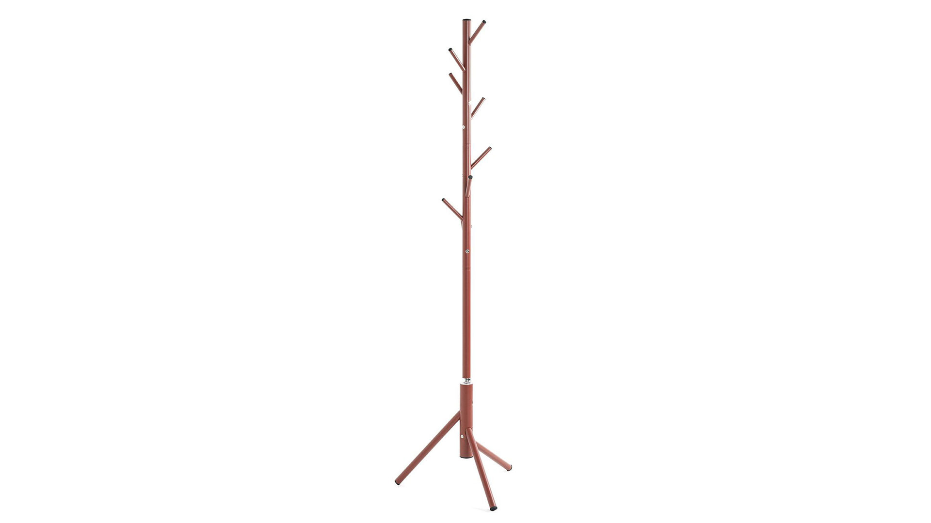 Der Garderobenständer ist der ideale Begleiter für einen aufgeräumten Eingangsbereich. Mit seinem stabilen, rot lackierten Metallgestell und den acht Garderobenhaken bietet er ausreichend Platz für Jacken, Mäntel und Accessoires.