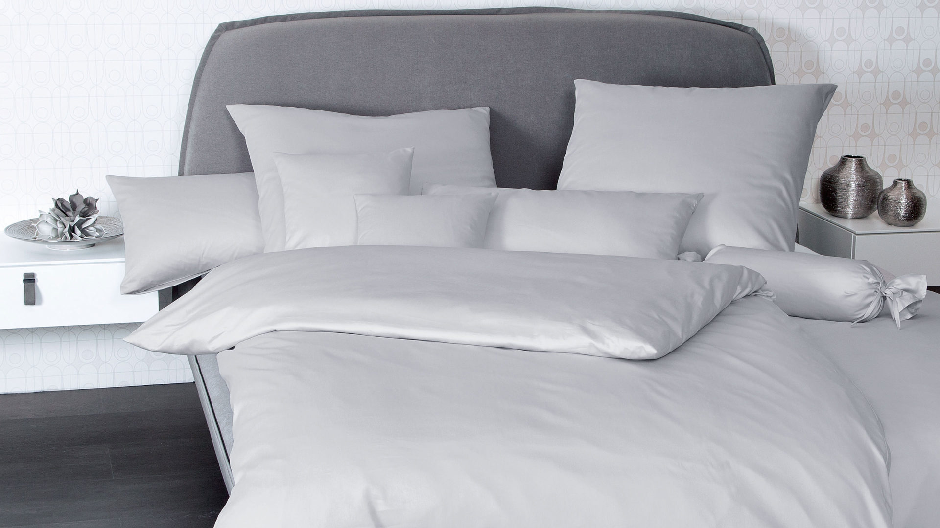 Das Modell Colors 31001 von der Marke Janine® aus geschmeidigem Mako-Satin in platinfarben in der Größe ca. 155 x 220 cm mit Kissenbezug in der Größe ca. 80 x 80 cm. Mako-Satin von Janine ist aus 100% naturreiner Mako-Baumwolle gefertigt. Dank der Mercerisierung, einem speziellen Veredlungsprozess für Baumwolle, erhält der Bettbezug ein samtiges Glanzfinish, das nicht nur das Dessin unterstreicht, sondern auch angenehm leicht und weich auf der Haut anliegt. Dazu ist die Janine-Satinbettwäsche äußerst pflegeleicht. Die Bettwäsche ist bis 60 Grad waschbar und trocknergeeignet. Des Weiteren ist in den Bettbezug ein Reißverschluss eingearbeitet, mit dem Sie die Bettzeuggarnitur einfach mit einem Zip wieder aufziehen können.