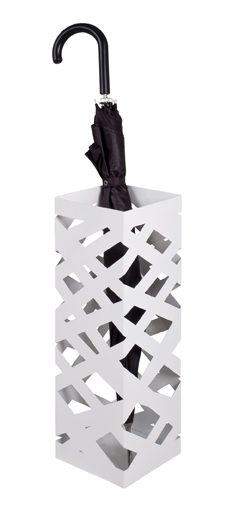 Ein Designobjekt für den Empfangsbereich Ihres Zuhauses! Bitten Sie Ihre Gäste ruhig herein, wenn diese mit nassen Regenschirmen vor der Türe stehen. Ein Schirmständer sorgt zuverlässig dafür, dass der Boden in Ihrem Flur dennoch trocken und sauber bleibt. Dieses Einrichtungsaccessoire aus weißem Stahl ist nicht nur dekorativ, sondern auch pflegeleicht sowie feuchtigkeitsbeständig.