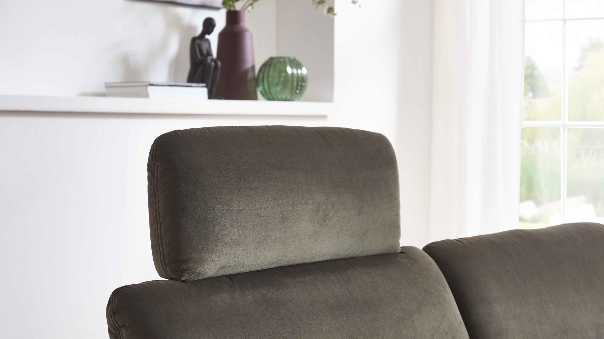 Die Kopfstütze KSG ist ein angenehmes Mehrpreis-Zubehör für die Polstermöbel aus der Modulmaster-Serie MM-ZE1156. Mit dem olivgrünen Stoffbezug in Samtoptik und der Kopfstützen-Vorrichtung aus verchromtem Metall präsentiert sie sich modern-elegant designt.