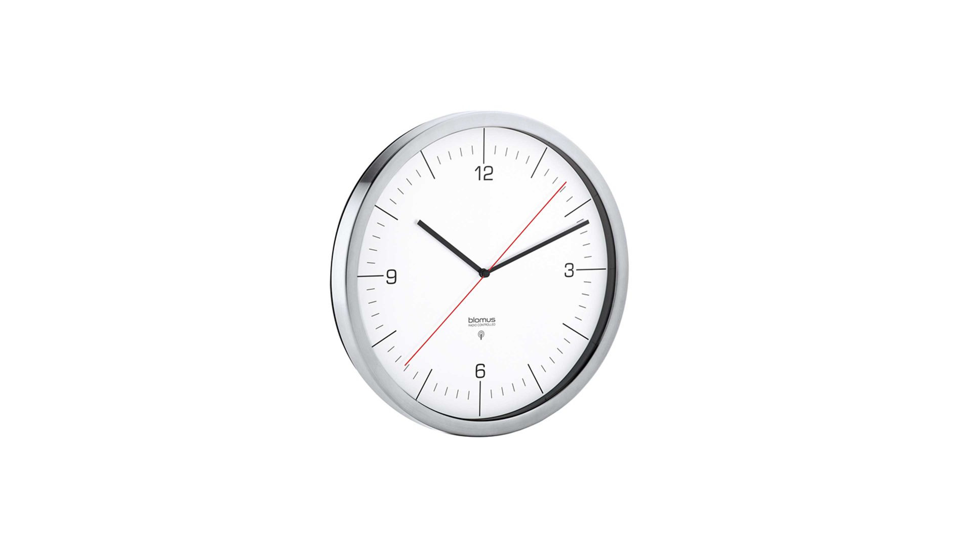 blomus Funk-Wanduhr Crono | weißes Kunststoff-Ziffernblatt mit schwarzer Beschriftung | matte Edelstahleinfassung | eingestellt nach mitteleuropäischer Zeit | roter Sekundenzeiger | geeignet für Länder, die im Umkreis von 2000 km von Offenbach liegen | Durchmesser ca. 24 cm | Rahmenhöhe ca. 5 cm | inklusive Batterie | in verschiedenen Ausführungen bestellbar
