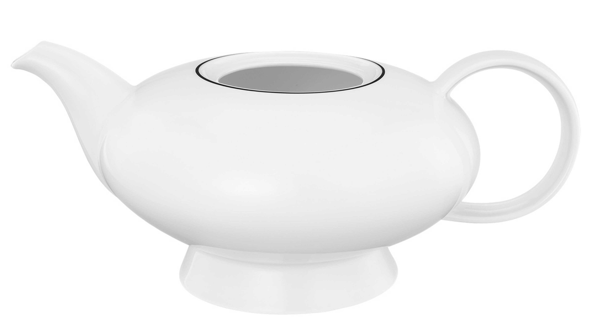 Seltmann Lido | Teekanne ohne Deckel | weißes Hartporzellan mit filigranem schwarzen Rand | spülmaschinenfest | mikrowellengeeignet | backofenfest | Durchmesser ca. 26 cm | Maße ca. 18 x 15 x 26 cm (BxHxL) | Fassungsvermögen ca. 1250 ml | Made in Germany | individuell kombinierbare Geschirrserie