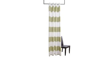 Der moderne FUGGERGAUS Schlaufenschal Burbank ist eine ansprechende Dekoration für Ihr Fenster. Mit seinen breiten Blockstreifen in Weiß und Schilfgrün und dem lockeren Faltenwurf setzt er frische Akzente im Wohnbereich. Die breiten Ösen erleichtern Ihnen die Aufhängung des Schals auf der Gardinenstange. Der Stoff ist blickdicht und eignet sich somit gleichzeitig als Sichtschutz und Sonnenschutz. Mit seinen Maßen von ca. 140 cm x 245 cm (B/L) ist der Ösenschal ideal für bodentiefe Fenster oder Ihre Terrassentür geeignet. Das praktische und attraktive Modell harmoniert sowohl mit klassischen und modernen Wohnelementen. Den dekorativen Schlaufenschal erhalten Sie noch in zwei weiteren Farbvarianten.