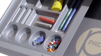 Die Größe von ca. 80 x 4 x 38 cm (BxHxT) ist genau auf den entsprechenden Arbeitsplatz zugeschnitten. Mit Ergänzungsartikeln wie einer Utensilienschale können Sie den Schubladeneinsatz optimal nutzen. Der PAIDI Schubkastenauszug Marco bietet Ihnen so immer einen direkten Zugriff auf sämtliche Kleinteile, die Sie bei der Arbeit oder beim Basteln benötigen.