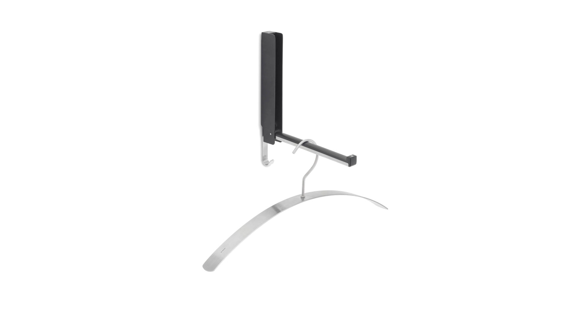 Bringen Sie mehrere Haken nebeneinander an, um eine stilvolle, geradlinige Garderobe zu gestalten. Besonders praktisch: Da der klappbare Haken aus mattem Edelstahl sowie schwarzem Kunststoff besteht, fügt er sich harmonisch in Ihre Einrichtung ein und ist zudem pflegeleicht und zeitlos. Einfach anzubringen, lässt sich der funktionale Haken problemlos bei Bedarf einklappen. Ist er ausgeklappt, verfügt er über die Maße ca. 2 x 25,5 x 22 cm (BxHxT).