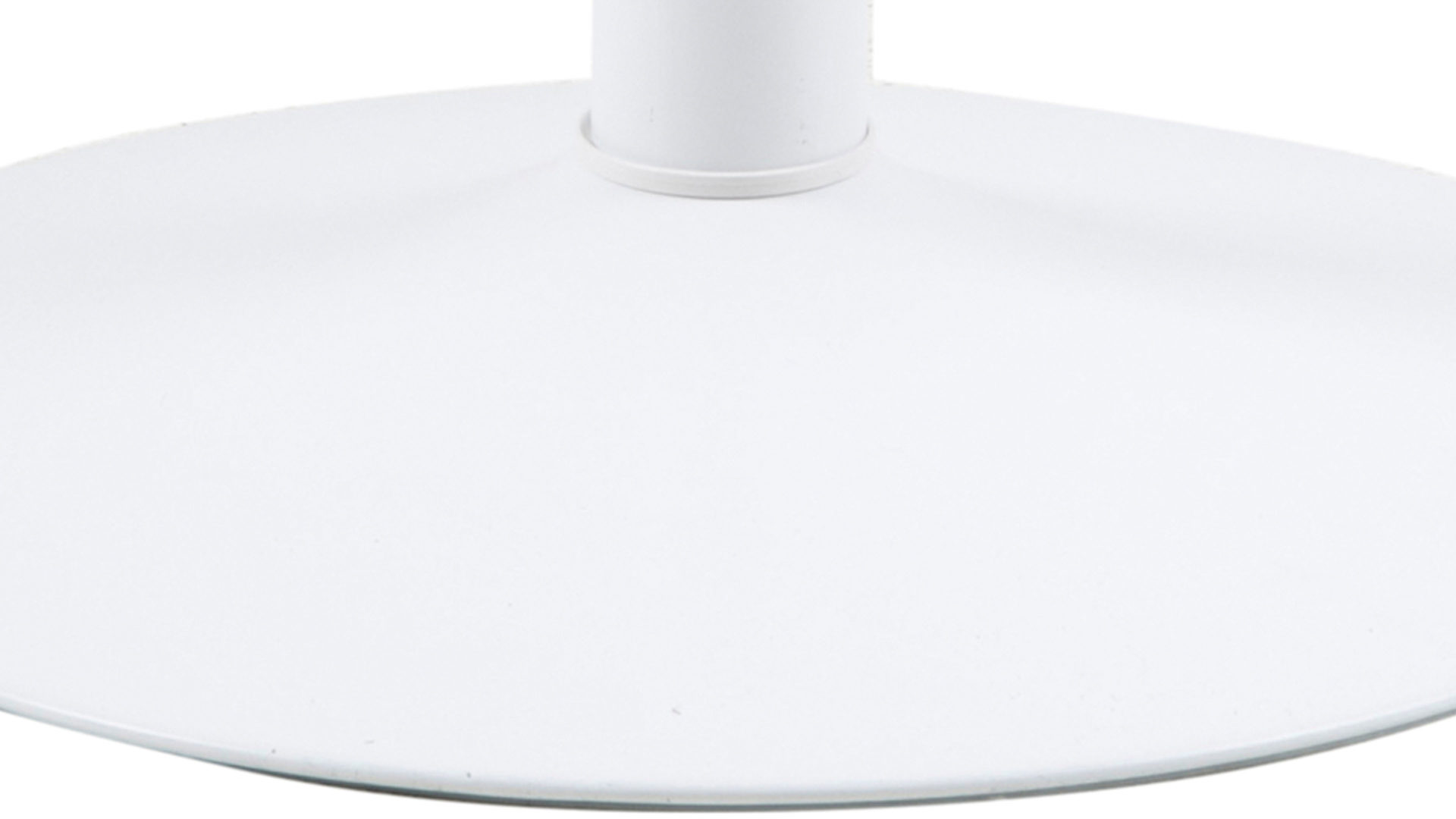 Dieser Esstisch zieht in Ihrer modernen Küche alle Blicke auf sich. Der runde Tisch mit auffälligem Fuß begeistert in strahlendem Weiß und fügt sich damit hervorragend in Ihre Einrichtung ein. Stellen Sie den Esszimmertisch im Retrolook in Ihren Essbereich und freuen Sie sich über die hohe Funktionalität des Esszimmermöbels. Gefertigt aus einer weiß lackierten MDF-Platte und einem Trompetenfuß aus weiß lackiertem Metall begeistert das Esszimmermöbel an geselligen Abenden mit Freunden oder der Familie.