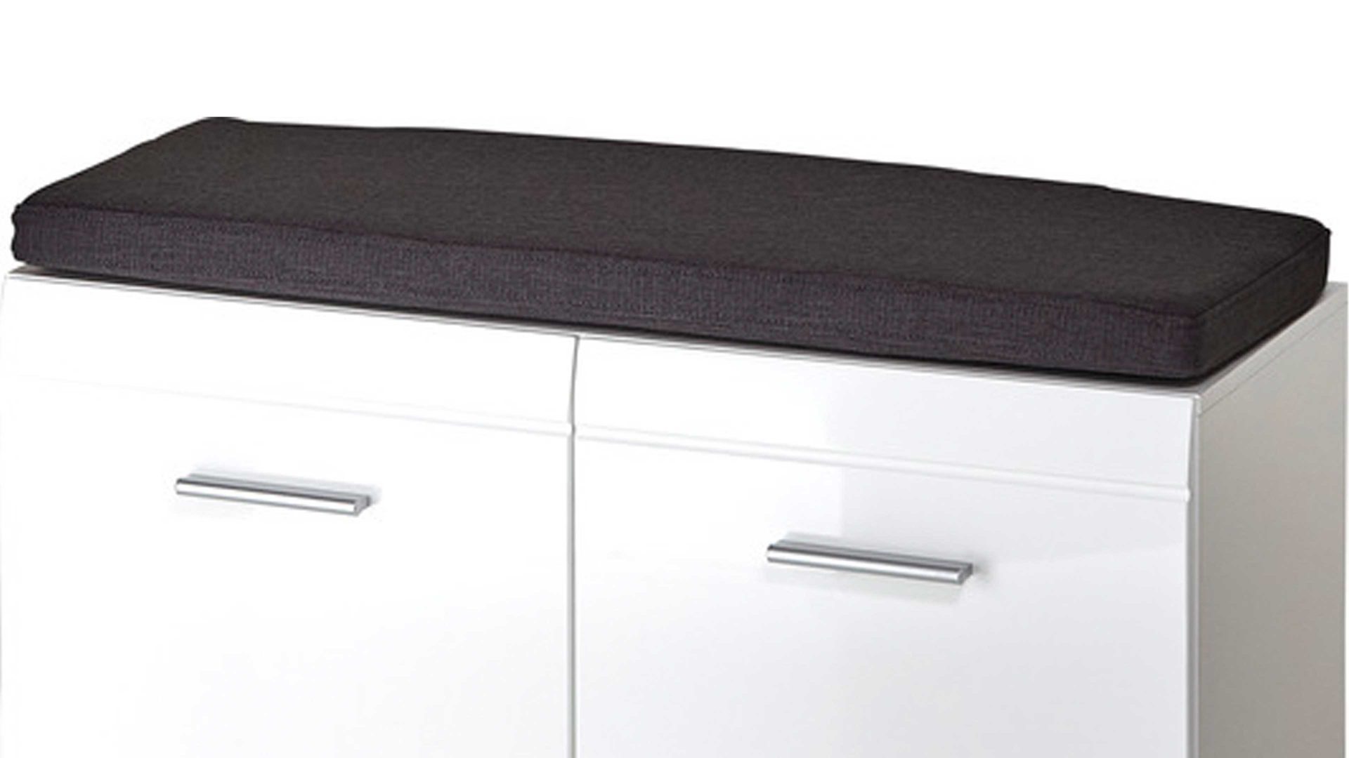 Das Kissen ist gepolstert und mit anthrazitfarbenem Stoff bezogen - ein wunderbarer Kontrast zu den weißen Fronten. Die Maße betragen ca. 96 x 6 x 35 cm (BxHxT).