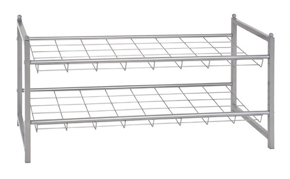 Schlichte Eleganz trifft auf funktionales Design. Dieses alufarbene Schuhregal mit zwei Böden, das sich aus Stahlrohren sowie Stahlgeflecht zusammensetzt, ist eine Bereicherung für jedes Zuhause. Dank seiner zeitlos schönen Optik kann dieses praktische Kleinmöbel nahezu beliebig mit vielen verschiedenen Flurmöbeln kombiniert werden. Am besten platzieren Sie diese Schuhablage in der Nähe Ihrer Eingangstür.