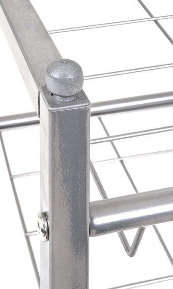 Dieses alufarbene Schuhregal mit drei Böden verhindert zuverlässig, dass Sneaker, Stiefel & Co. kreuz und quer im Eingangsbereich Ihres Hauses herumfliegen. Das kompakte Kleinmöbel besteht aus stabilem Stahlrohr sowie einem pflegeleichten Stahlgeflecht. Mit Maßen von ca. 80 x 60 x 30 cm (BxHxT) bietet es Platz für bis zu 20 Paar Schuhe. Sie benötigen noch mehr Stauraum? Dann haben wir eine gute Nachricht für Sie: Das Schuhregal gehört zu den stapelbaren Wohnaccessoires.