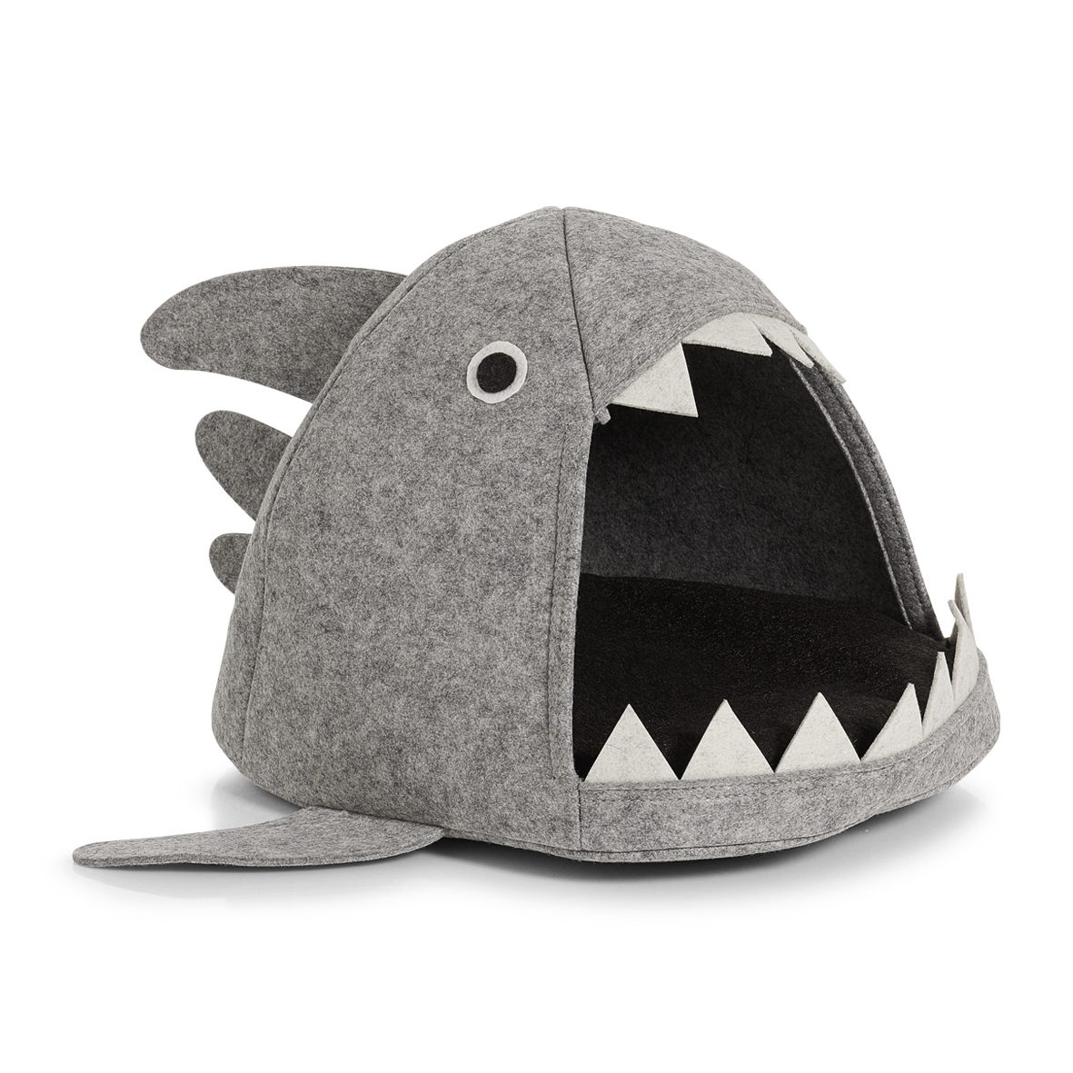 Diese angesagte Höhle aus grauem Filz ist der ideale Rückzugsort für Katzen und kleine Hunderassen. Der Hai ist ein toller Blickfang in Ihrem Wohnzimmer und wird auch gerne zum Spielen & Zeitvertreib genutzt. Ein kuscheliges Kissen aus Polyester bereichert den komfortablen Liegeplatz.