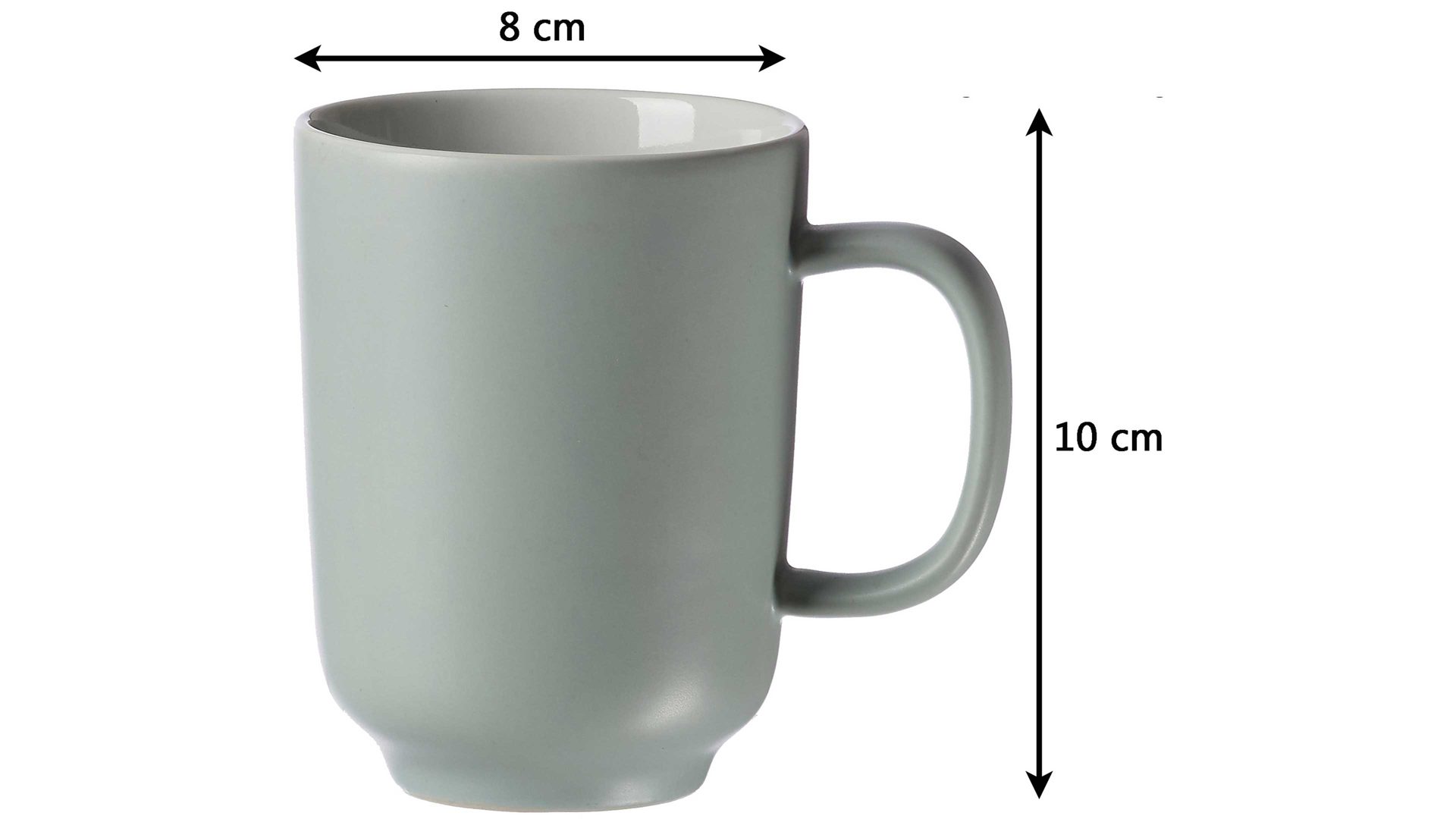 Es handelt sich um ein Set, das sich aus vier gleich großen Bechern zusammensetzt. Jeder Kaffeebecher ist ca. 10 cm hoch und hat einen Durchmesser von ca. 8 cm, sodass er ca. 320 ml Ihres liebsten Heißgetränks fasst.