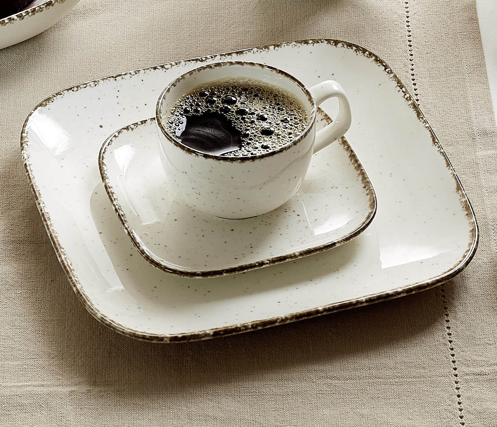 Beim erstklassigen Service handelt es sich um ein zwölfteiliges Set, das sich aus vier Kaffeetassen, vier Untertassen und vier Tellern zusammensetzt. Mit einer Höhe von ca. 7 cm und einem Durchmesser von ca. 9 cm bieten die Kaffeetassen ein Fassungsvermögen von ca. 150 ml, sodass Sie jedes Mal einen schönen Lungo genießen können. Die vier quadratischen Untertassen messen ca. 14 x 2 x 14 cm (BxHxT). Auch die Teller sind quadratisch gestaltet. Ihre Maße belaufen sich auf ca. 23 x 2 x 23 cm (BxHxT).