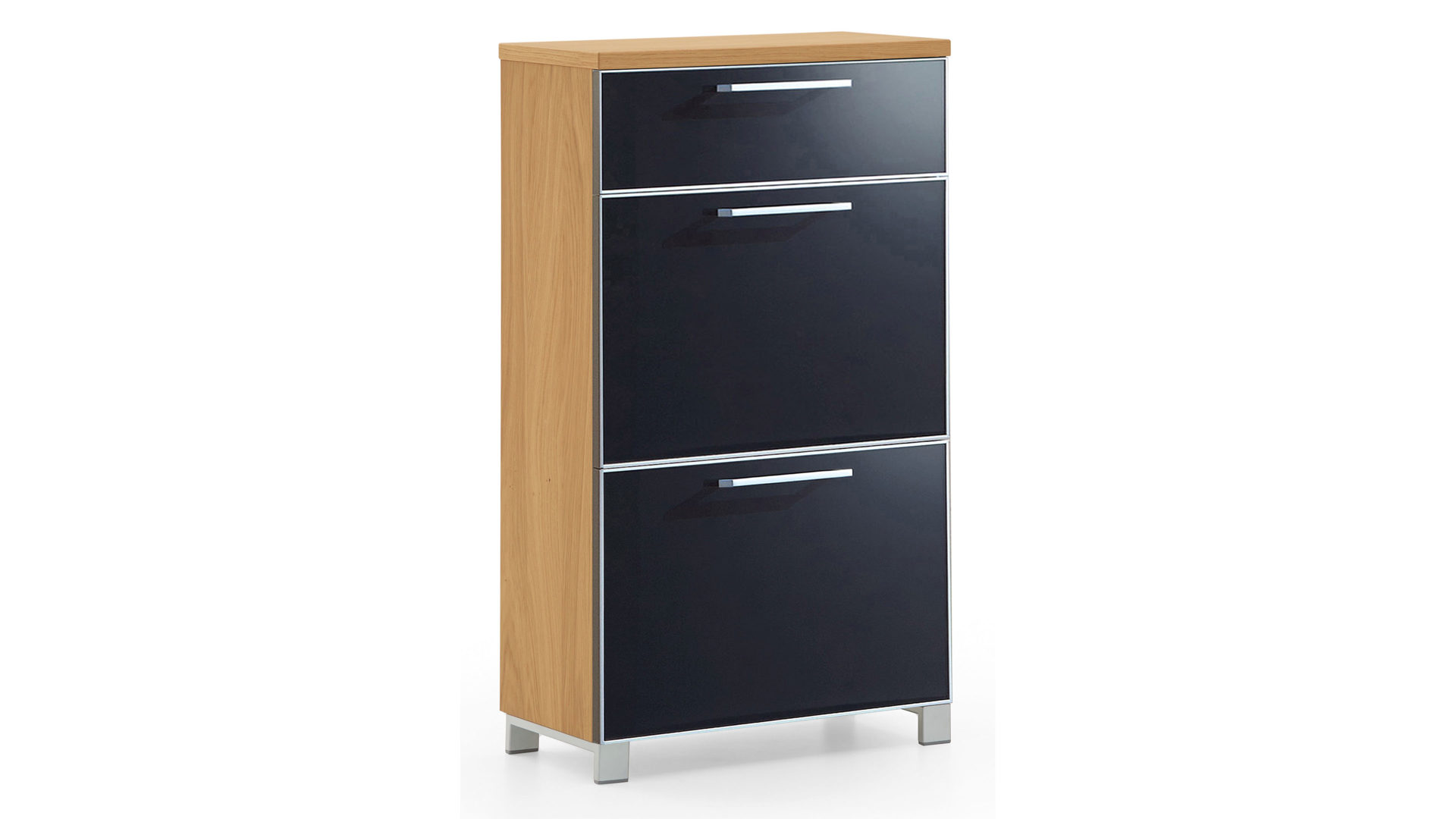 Es handelt sich um eine erstklassig verarbeitete Schuhkommode Made in Germany, die Ihnen in zwei Korpus- und drei Glasfarben zur Wahl steht. Demnach können Sie den Schuhkipper auf Ihren Geschmack abstimmen. Überdies lässt er sich bei Bedarf durch weitere Dielenmöbel im selben Design individuell ergänzen. Die Lieferung des Schranks erfolgt vormontiert.