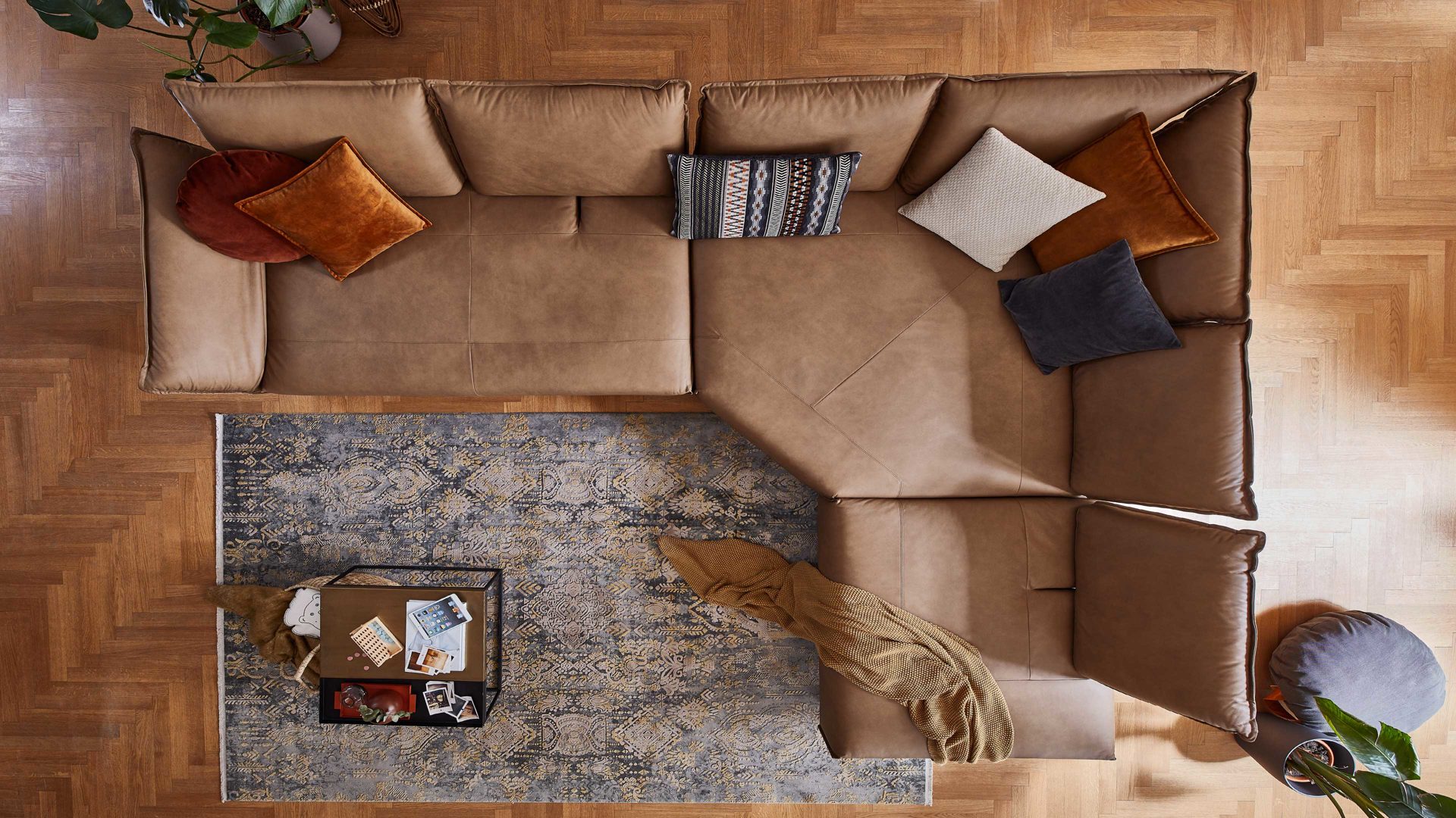 Das W.SCHILLIG Leder-Ecksofa Bonnie kombiniert filigrane, aber dennoch robuste bronzefarbene Metallfüße mit einem fangofarbenen Lederbezug. Auch der Rücken ist original lederbezogen. Durch die Farben und Materialien strahlt das Sofa moderne Eleganz mit noblem Touch aus.