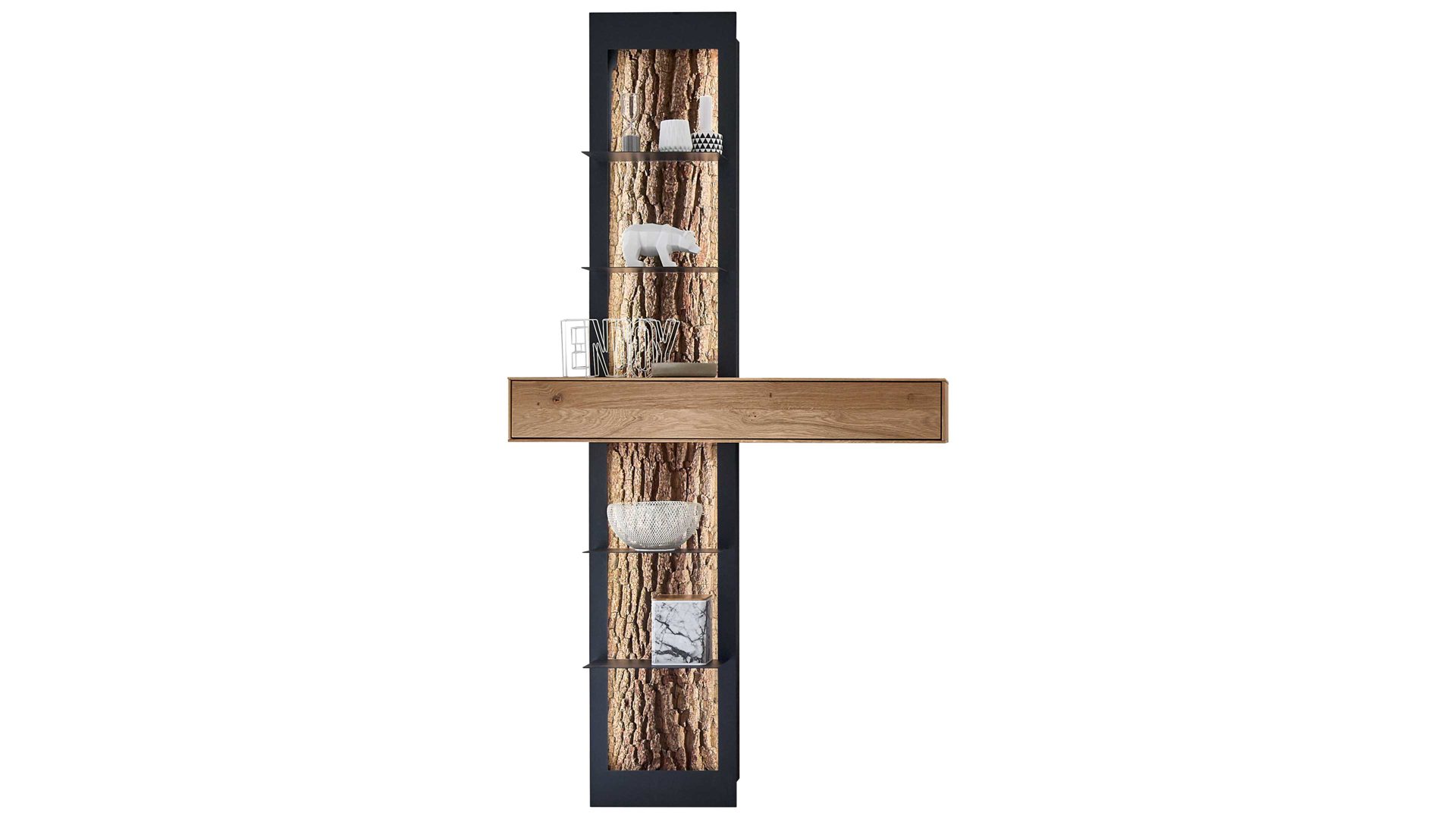 Der Garderobenhaken Runa verbindet massive Kerneiche und anthrazitfarben pulverbeschichtetes Metall zu einem robusten, modernen und eindrucksvollen Ganzen.