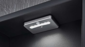 Sie ist aus silberfarbenem Kunststoff hergestellt und dient dazu, die Innenbereiche von Garderobenschränken im wahrsten Sinne zu erhellen. Die Innenraumleuchte wird mit einem fest verbauten LED-Leuchtmittel der hohen Energieeffizienzklasse A++ (Spektrum A++ bis E) sowie einem wiederaufladbaren Akku geliefert.