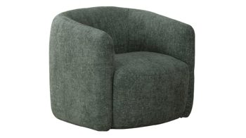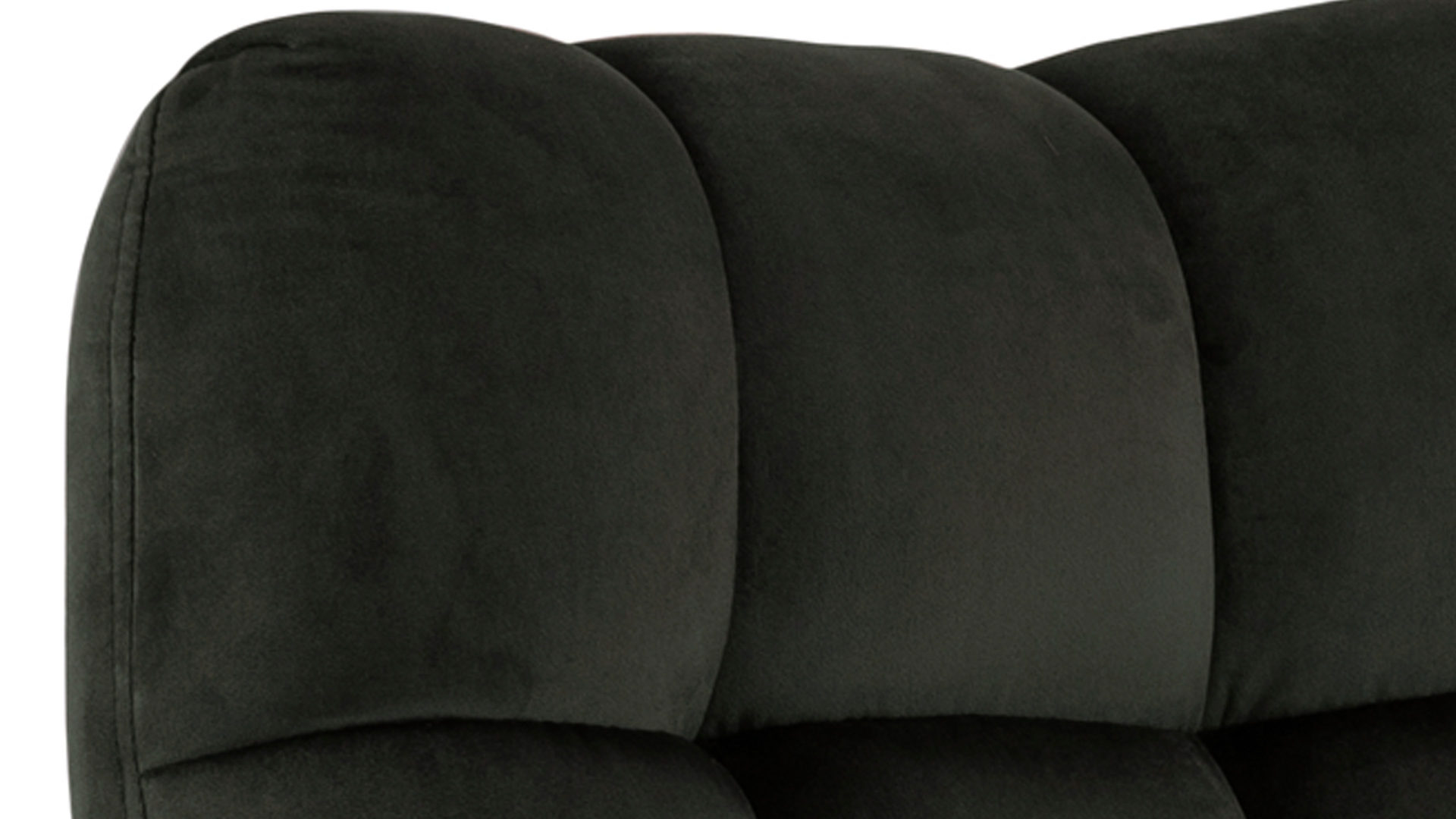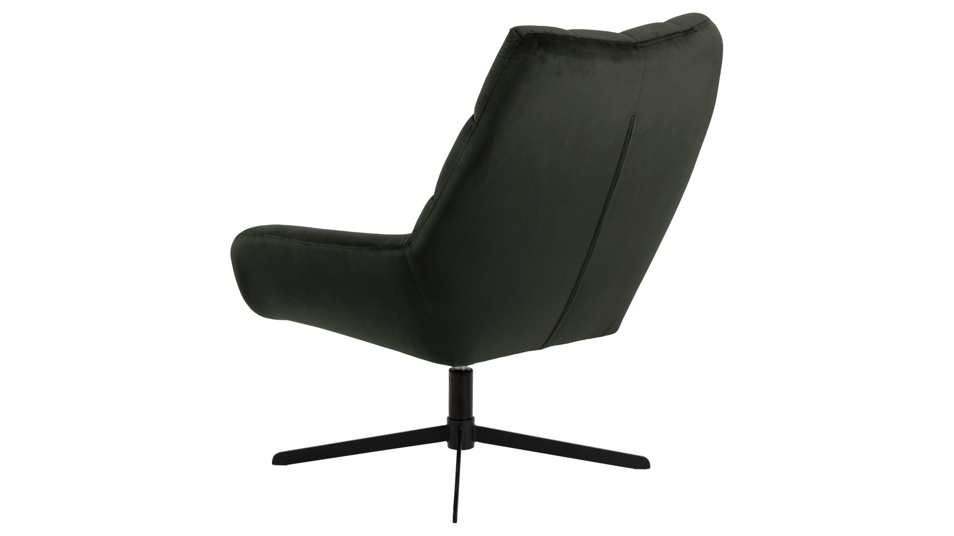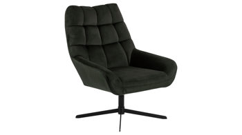 Auch farblich erlaubt der Loungesessel angenehme Freiheit beim Kombinieren: Dafür sorgt der dunkelgrüne Samtbezug. Der weiche Stoff umhüllt sowohl die Sitzfläche als auch die gesteppte Rückenlehne inklusive der bequemen Armlehnen herrlich soft. Das rau pulverbeschichtete Metallgestell fließt in sattem Schwarz stimmig in das Gesamtbild ein.