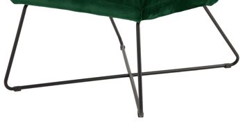 Dabei harmoniert der Polsterstuhl in seiner sanften Formensprache mit zahlreichen Einrichtungsstilen. Moderne Geradlinigkeit ergänzt er ebenso stimmig wie den beliebten Vintage-Trend. In jedem Fall belebt der Relaxstuhl das Interieur durch einen leuchtenden Farbakzent. Dafür sorgt der Samtbezug in Waldgrün. Seine gemütliche Steppung umhüllt sowohl die Sitzfläche als auch die Rückenlehne. Neben dem außergewöhnlichen Farbton erzeugen die gekreuzten filigranen Standfüße einen weiteren Blickfang. Das rau pulverbeschichtete und mattschwarze Metallgestell bildet zum tiefen Grün einen tollen Kontrast.