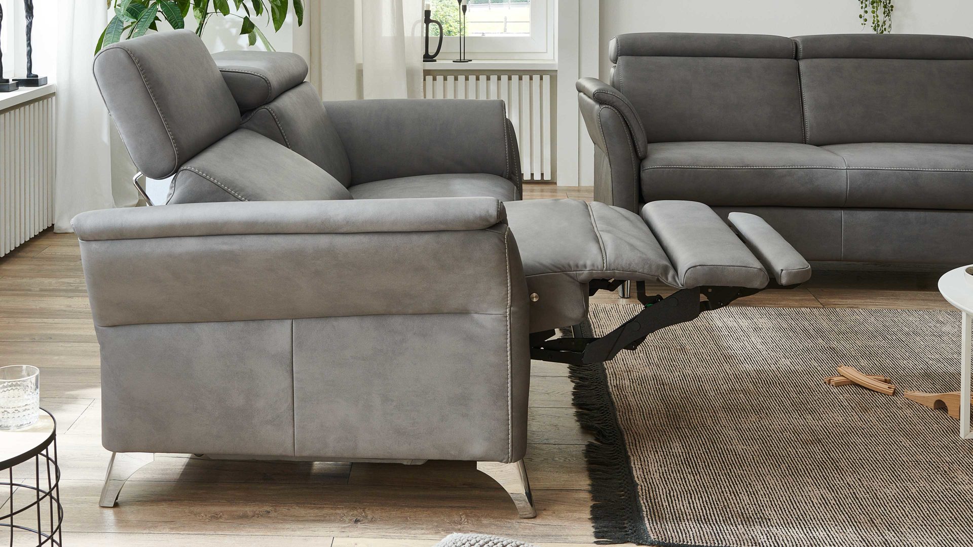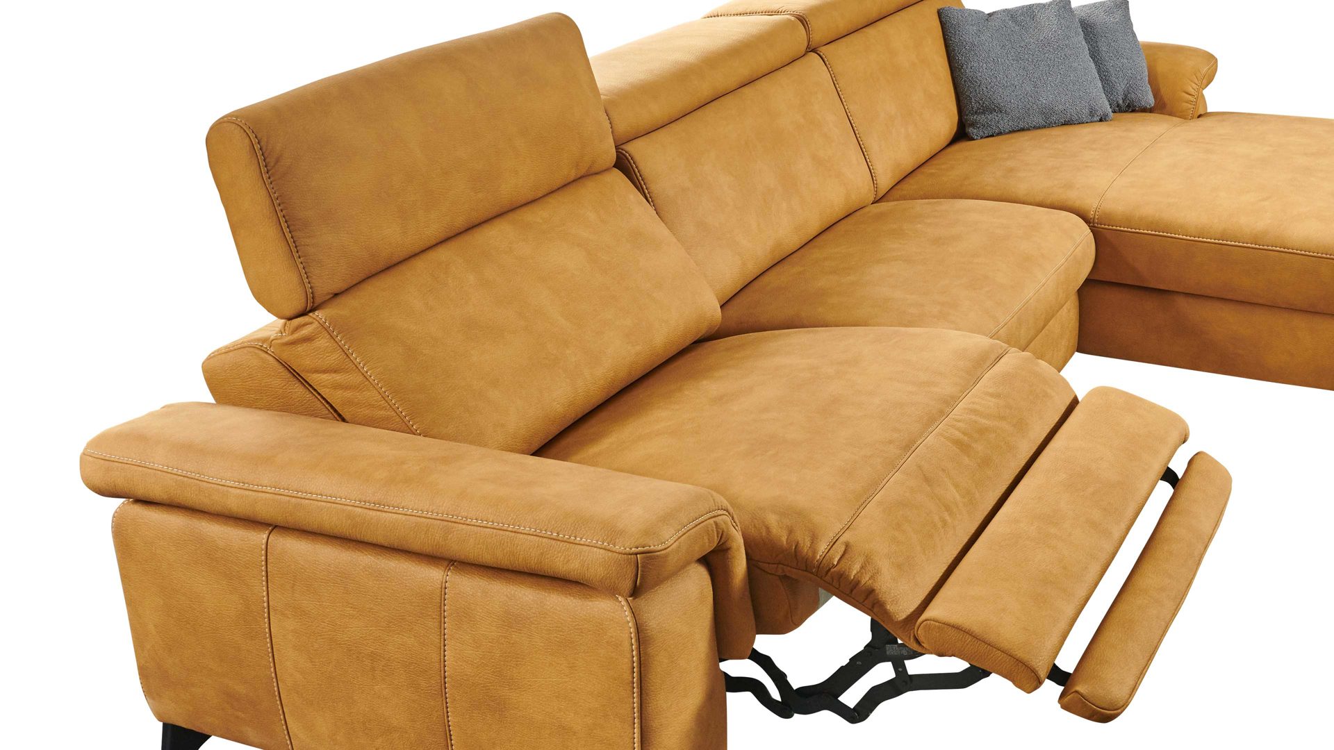 Über zwei Motoren und mittels Kabel-Handschalter lassen sich Rückenlehne, Sitz und Fußstütze des jeweiligen Polstermöbels auf Knopfdruck stufenlos verstellen. In der Endposition können Sie Ihre Beine komplett ausstrecken und beim Fernsehen oder Lesen auf dem Sofa besonders entspannt sitzen.
