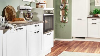 Die Highlights der individuell planbaren Küche sind der hochgebaute Backofen und die zahlreichen Auszüge mit extra viel Stauraum. Optional können Sie eine Armatur für die Einbauspüle und eine Geschirrspülmaschine für eine bequemere Geschirrreinigung ergänzen. Die hochwertige Einbauküche ist Made in Germany.