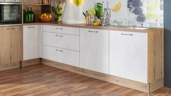 Hinzu kommt eine hochwertige Edelstahl-Einbauspüle. Optional können Sie die Küche Made in Germany auch mit einem praktischen Geschirrspüler erweitern.