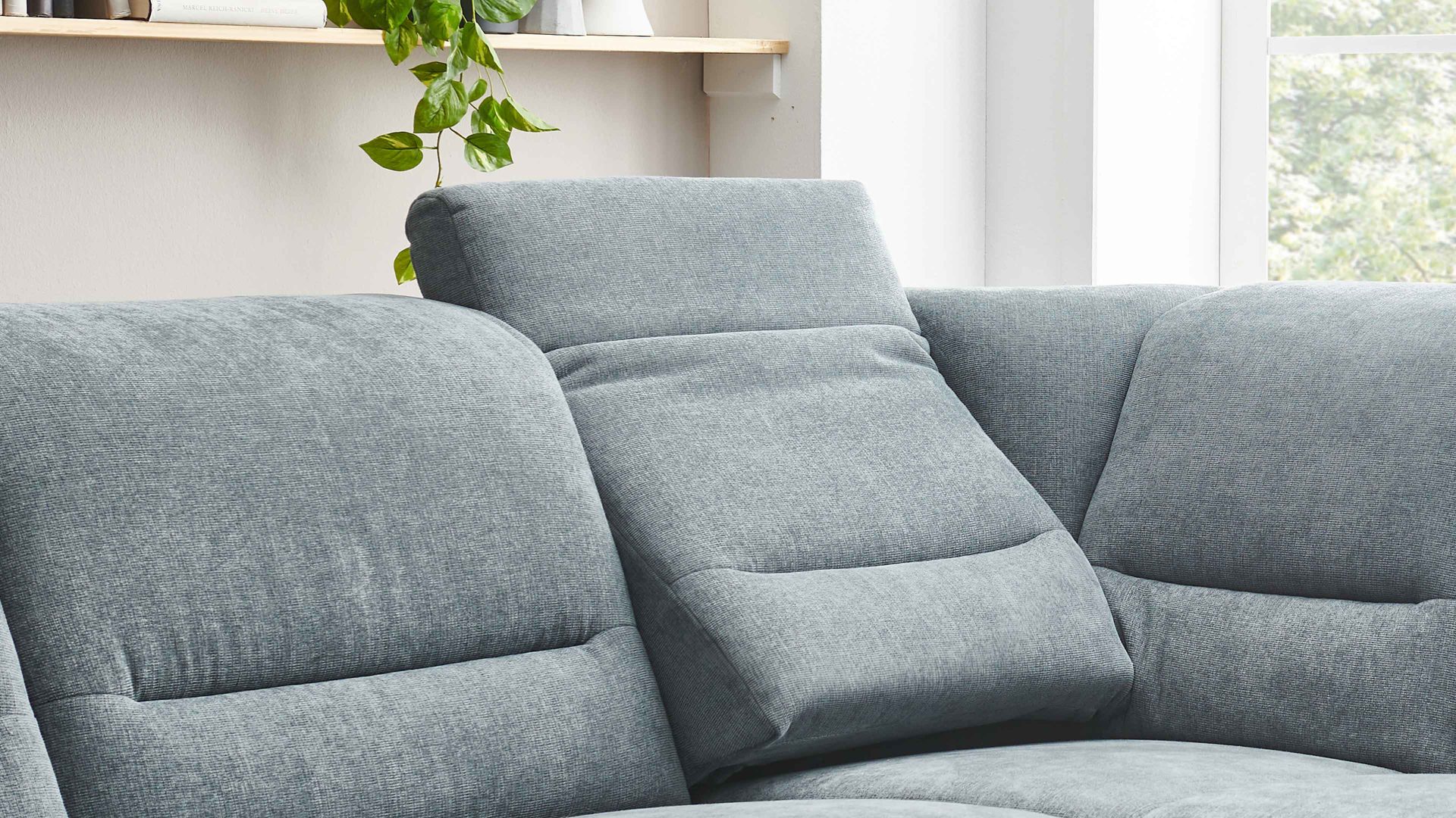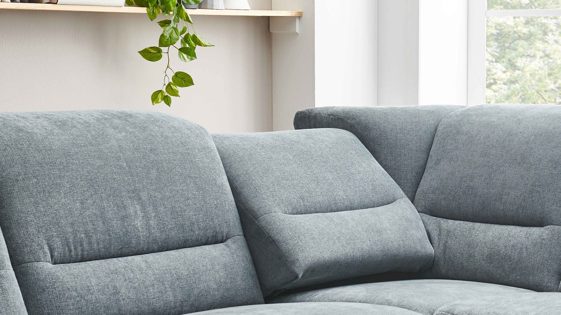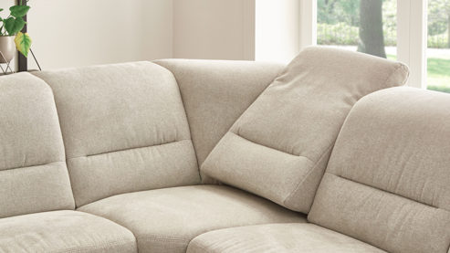Indem Sie mit Ihrer Hand kurz unter das Rückenpolster greifen und die Rückenlehne zuerst leicht nach oben und im Anschluss nach vorne ziehen, verändert sich der Neigungswinkel der Lehne, sodass Sie sich beim Lesen, Fernsehen oder reinen Entspannen auf der Couch in eine besonders bequeme Position begeben können. Auf diese Weise verschafft die manuelle Relaxfunktion Ihrem Körper und Geist eine Extraportion Erholung.