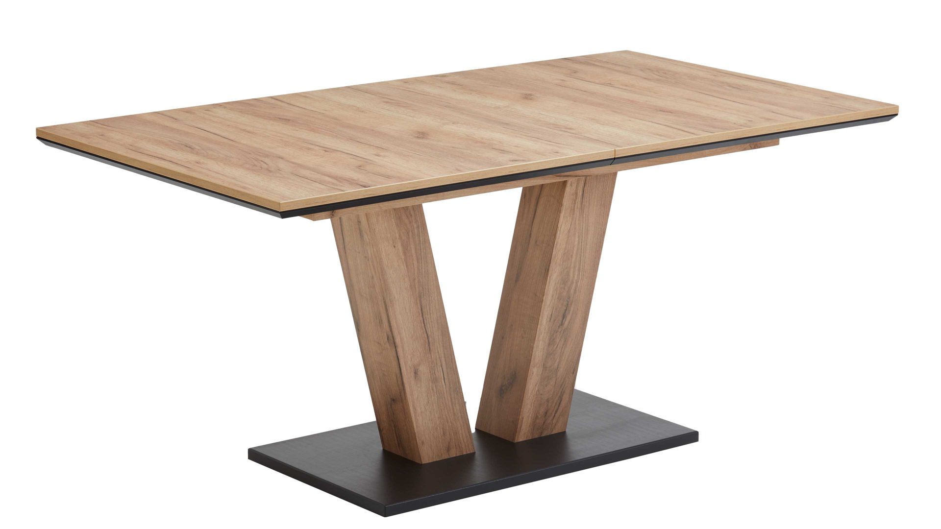 Praktischerweise können Sie das zweiteilige Metallgestell in Trapezform versetzbar montieren. Die Maße des einfach aufzubauenden Tisches belaufen sich auf ca. 180 x 75 x 100 cm (LxHxT). Er gehört zu einer attraktiven Esstisch-Serie. Sie wählen aus 3 verschiedenen Holzversionen mit 3 unterschiedlichen Plattenstärken sowie 4 Gestellvarianten in 3 Farbausführungen. Konfigurieren Sie den Esszimmertisch nach Ihren Wünschen und Bedürfnissen. Ergänzend sind passende Sitzbänke erhältlich.