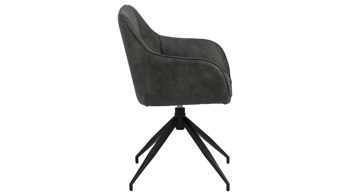 Der Armlehnsessel kann sich nicht nur sehen, sondern auch fühlen lassen. Mit seiner komfortablen Schaumpolsterung ermöglicht er bequemes Sitzen. Auch die Armlehnen sind gepolstert. Des Weiteren ist der attraktive Esszimmerstuhl mit einer praktischen Drehfunktion ausgestattet. Seine Sitzhöhe beträgt ca. 46 cm und die Sitztiefe liegt bei ca. 41 cm. Die Gesamtmaße des Drehsessels belaufen sich auf ca. 58 x 85 x 55 cm (BxHxT). Er ist bis maximal 110 kg belastbar. Der clevere Einsatz der Plastik-Fußkappen schützt den Fußboden.
