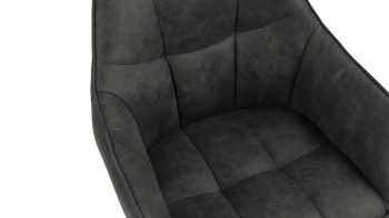 Dieser Armlehnstuhl verbindet ein modernes, elegantes Design mit einem besonders hohen Sitzkomfort. Darüber hinaus ist er hochwertig verarbeitet. Das mattschwarz pulverbeschichtete Metallgestell mit rauer Oberfläche sorgt für einen stabilen Stand und bildet auch optisch eine gelungene Basis für den Schalenstuhl. Als Highlight fungiert der feine Stoffbezug in trendigem Anthrazit. Die Steppnähte der Sitz- und Rückenfläche setzen einen attraktiven Akzent.