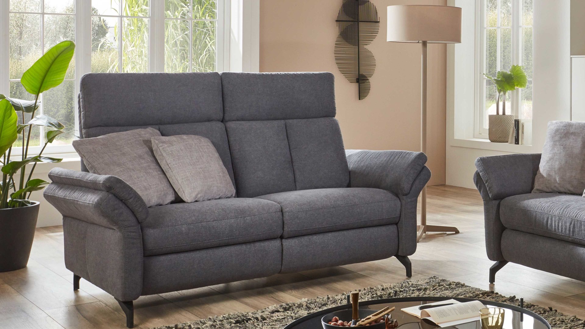 Der Zweisitzer aus dem hochwertigen Polsterprogramm OrthoSedis 4.0 kombiniert einen edlen anthrazitfarbenen Stoffbezug mit mattschwarz lackierten Metallfüßen. Sowohl die Materialien als auch die Farben harmonieren perfekt und verleihen dem Sofa eine moderne und elegante Ausstrahlung. Durch das zeitlose Design fügt sich die Couch in verschiedene Einrichtungsstile passend ein.