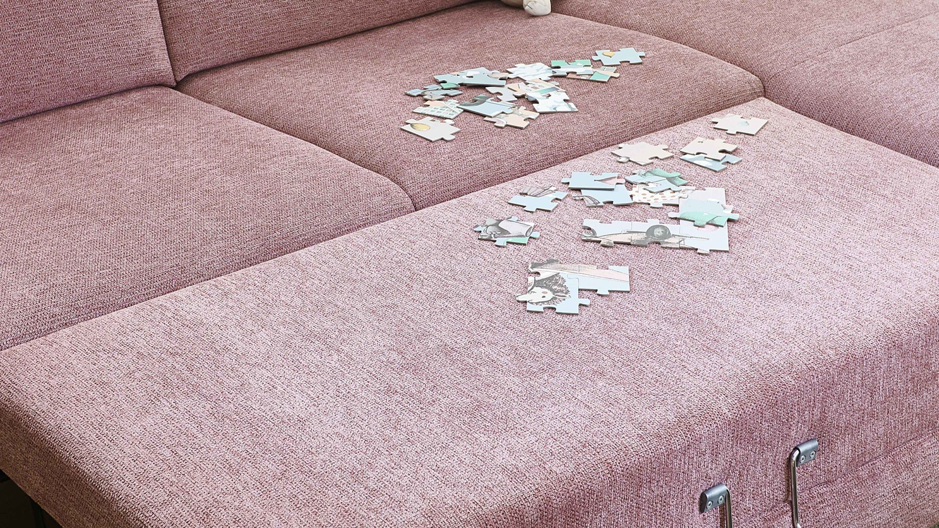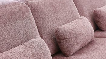 Die Eckcouch aus der Modulmaster-Serie MM-ZE1130 verbindet einen roséfarbenen Webstoffbezug mit mattschwarzen Aluminiumfüßen. Durch die perfekt aufeinander abgestimmten Materialien und Farben strahlt sie moderne Eleganz aus.