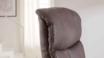 nougatfarbener Mikrofaserbezug mit Prägung in Lederoptik und heller Doppelstepp-Kontrastnaht