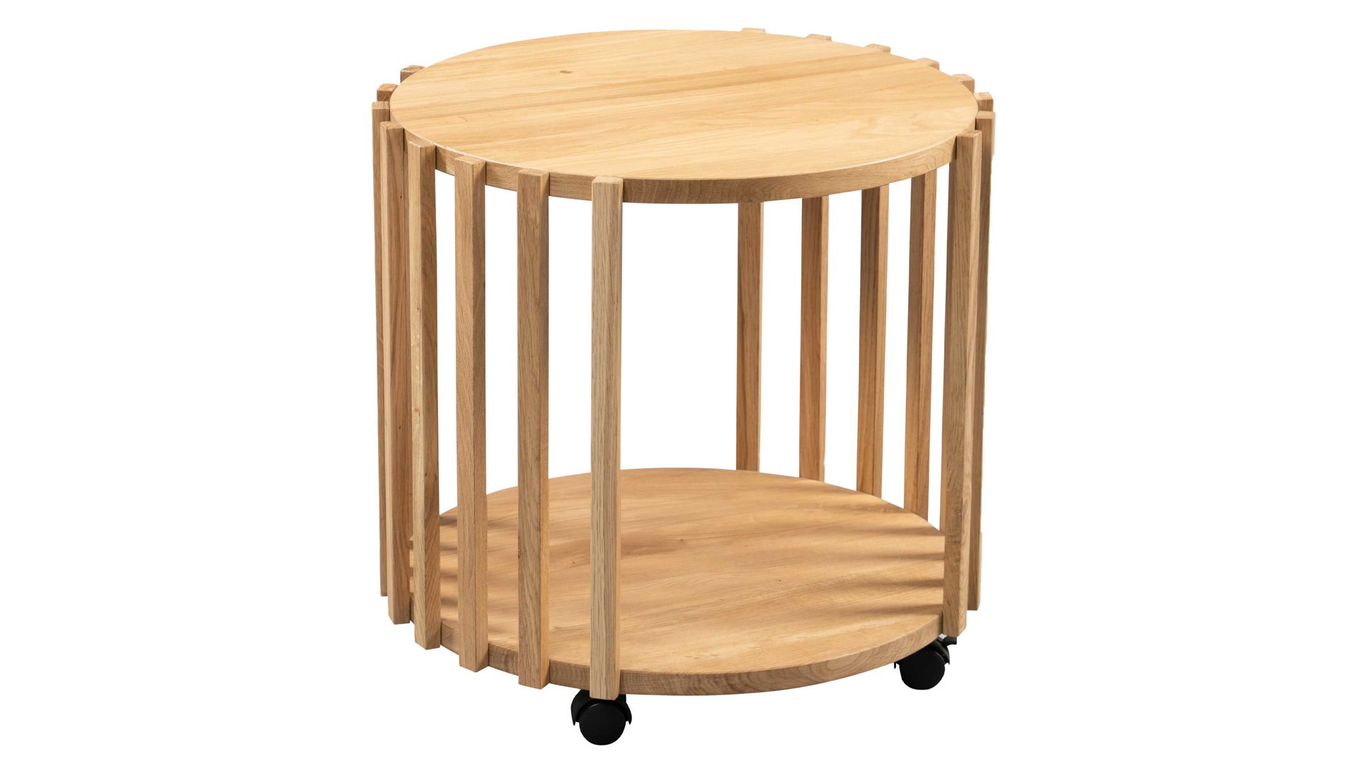 Der hochwertige Couchtisch Mats 1 besteht aus massiv geölter Wildeiche und bringt damit das Beste aus der Natur in Ihr Wohnzimmer. Durchmesser und Höhe betragen jeweils ca. 50 cm.