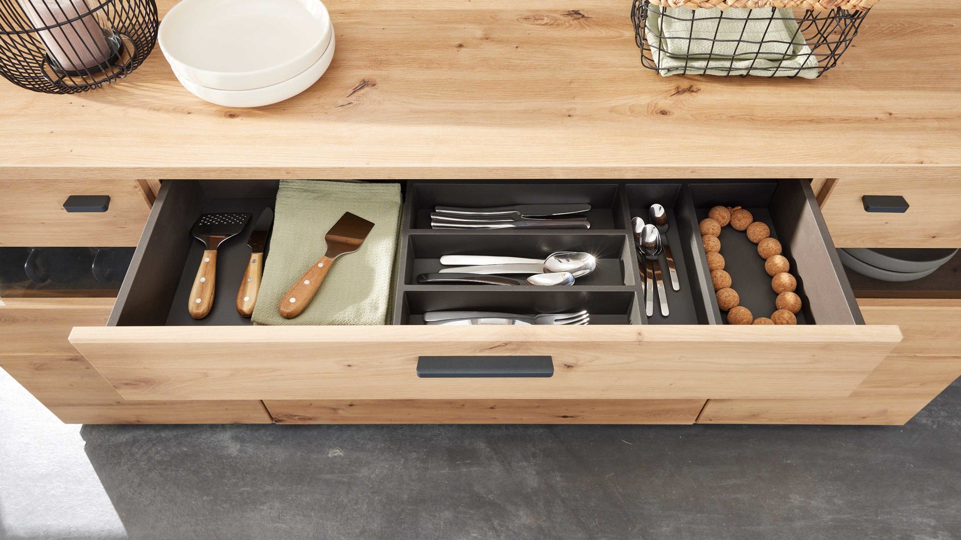 So entsteht eine stilvolle Kombination aus geschlossenen Fächern, offenen Präsentationsflächen und großzügigem Stauraum – durchdacht bis ins Detail.