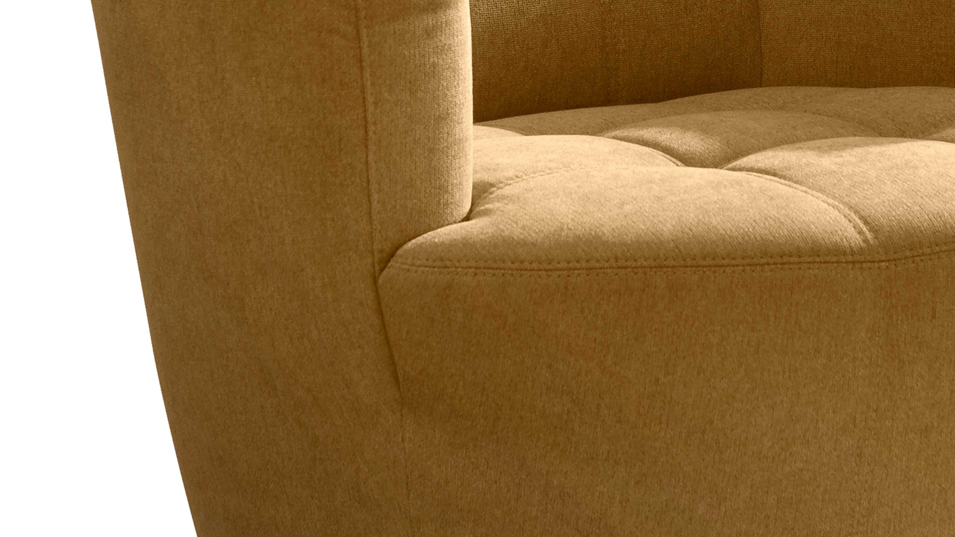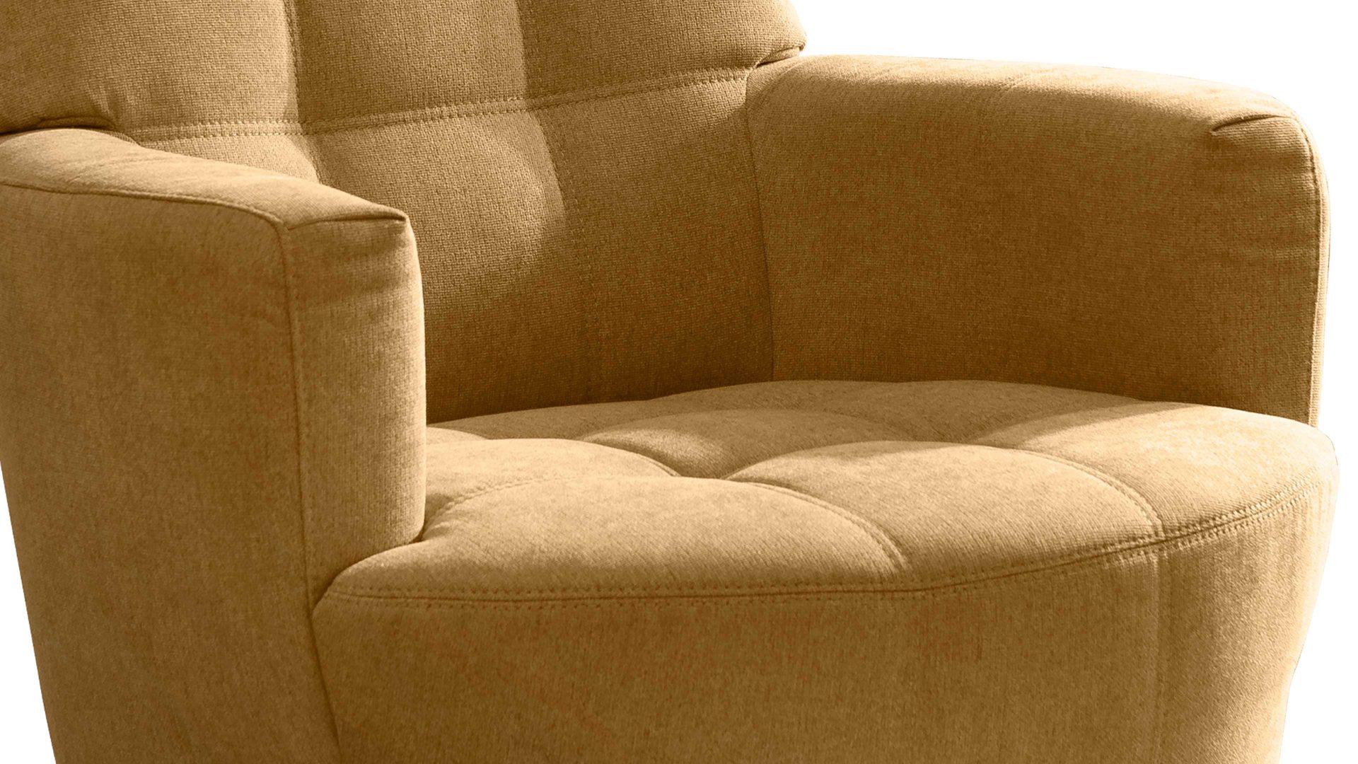 Mit dem honigfarbenen Bezug, der edel gesteppten Sitzfläche und dem mattschwarzen Metallfußring präsentiert sich der KAWOO Relaxsessel SE 53 modern, elegant und gemütlich.