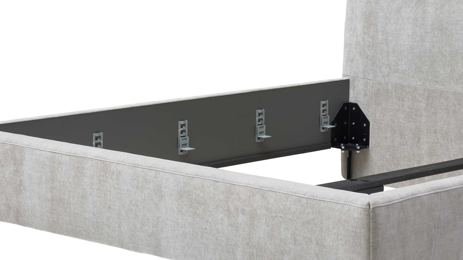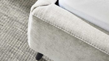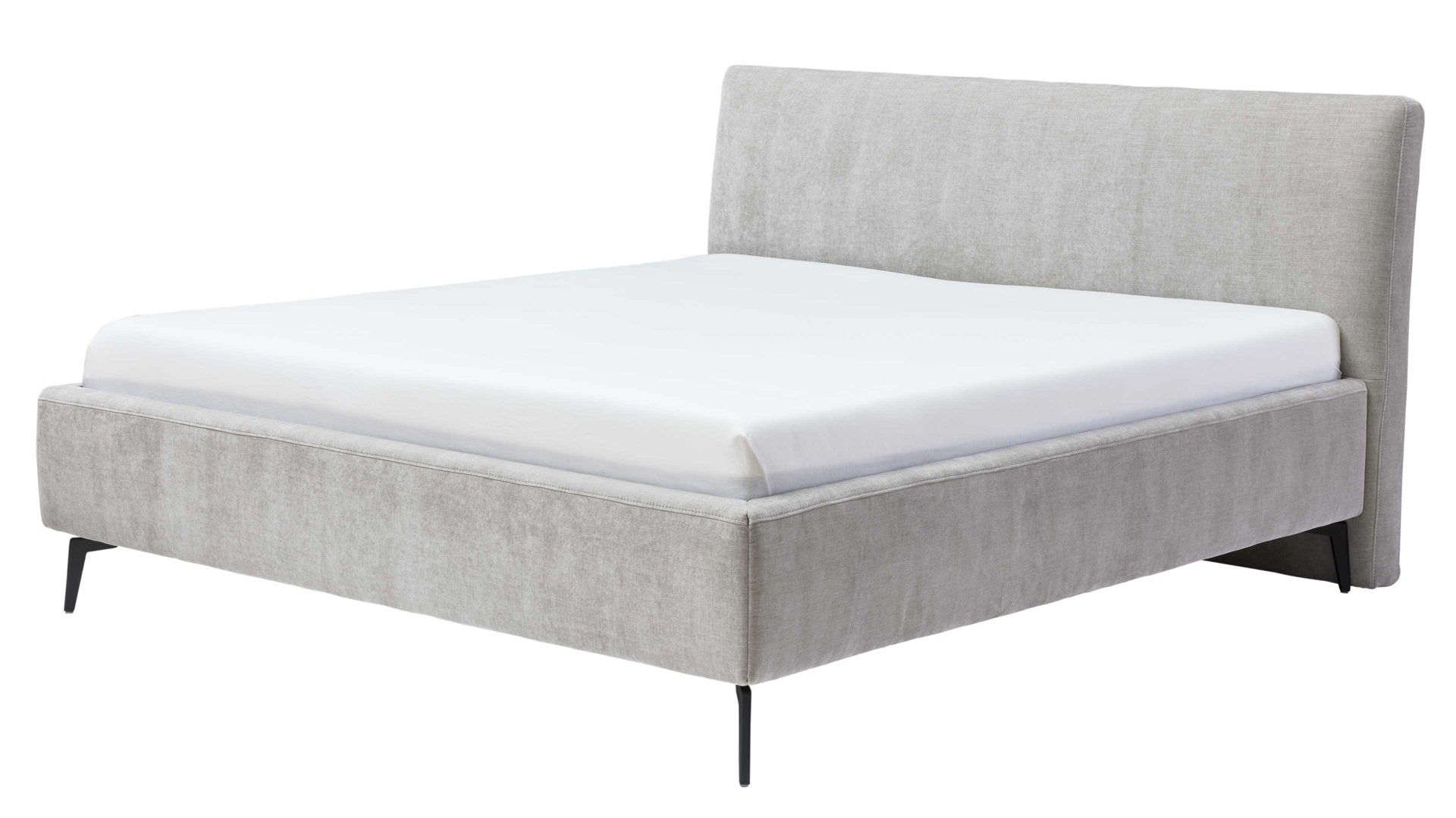 Die kubisch gepolsterten Bettseiten mit anthrazitfarben lackierter Innenseite setzen einen stilvollen Kontrast zum Stoffbezug und werden durch die schwarzen Metallfüße perfekt ergänzt. Für noch mehr Individualität kannst du aus vier weiteren Fußvarianten in zwei Höhen wählen.